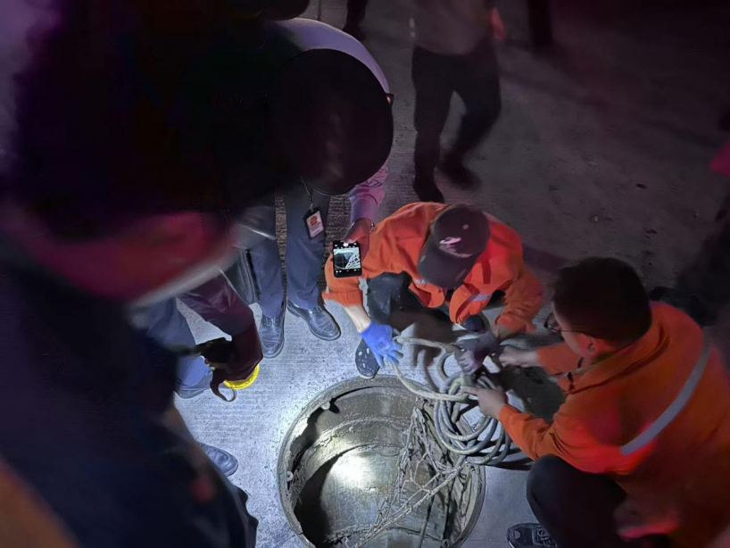 執(zhí)法人員對該公司排水渠及市政管網(wǎng)排放口采樣監(jiān)測